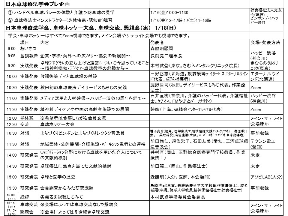 1月18日(日曜日)日本卓球療法学会で、もみじの家活動報告します(ZOOMにて)。